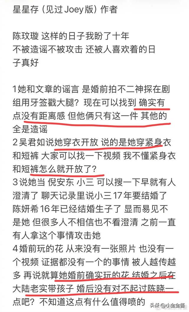 资深老粉现身说法,表示陈妍希只是喜欢穿性感衣服、和文章在剧场打打闹闹,完全没有越界的行为,而且,这些都是婚前的行为。